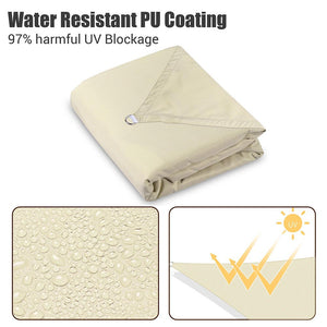 Yescom 16ft Square Shade Sail with PU coating is characterized by water-resistant. Polyester fabric can well block the harmful UV ray and reduce the temperature. With stainless steel D-shape ring, it can be easily hung on patio, garden or pool.