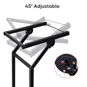 This 19" 12U Rack Mount DJ Mixer Stand features a top frame for placing mixers of different sizes, along with a bottom rack for storing large equipment such as amplifiers, equalizers, wireless microphones, etc. up to a maximum load of 220.5 Lbs.