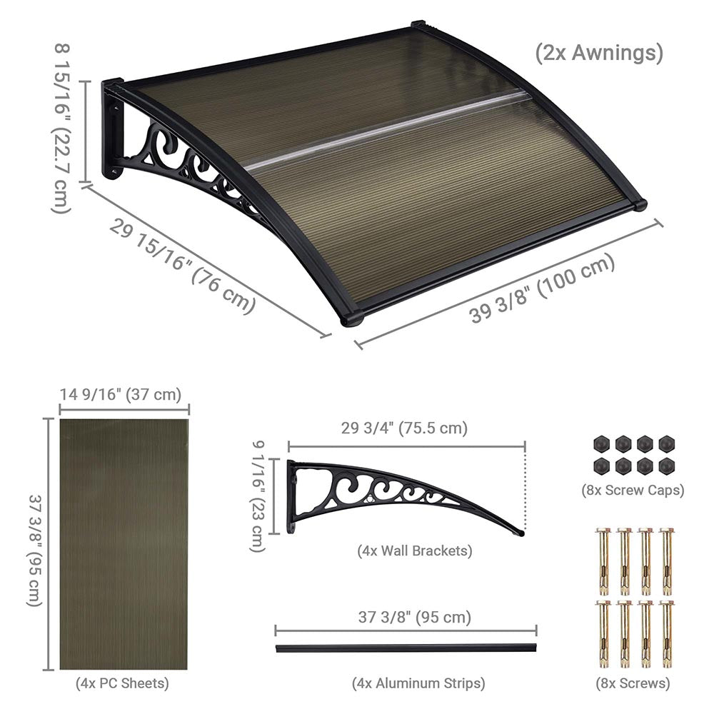- Single Awning Dimension(LxWxH): 39 9/16" x 38 3/16" x 10 1/4" (100.5x97x26cm)