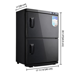 - 18" x 11" x 25" 2in1 Towel Warmer features dual cabinets provide total 46L large storage capacity