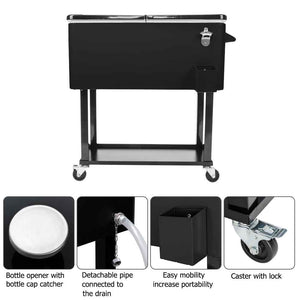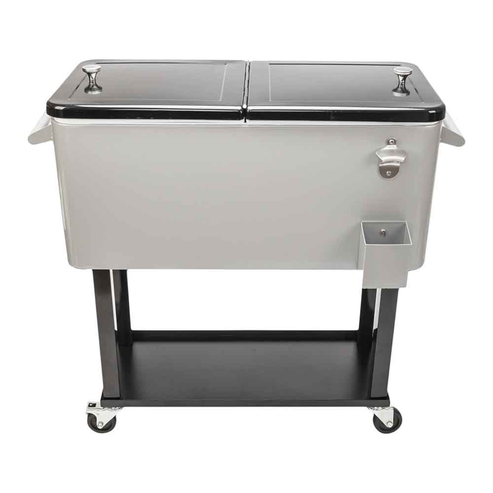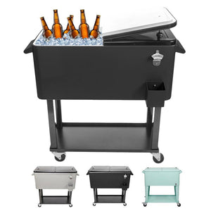 - 80 QT backyard cooler cart made of high quality iron spray material, wear resistant and environment friendly