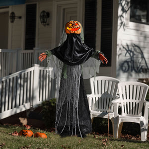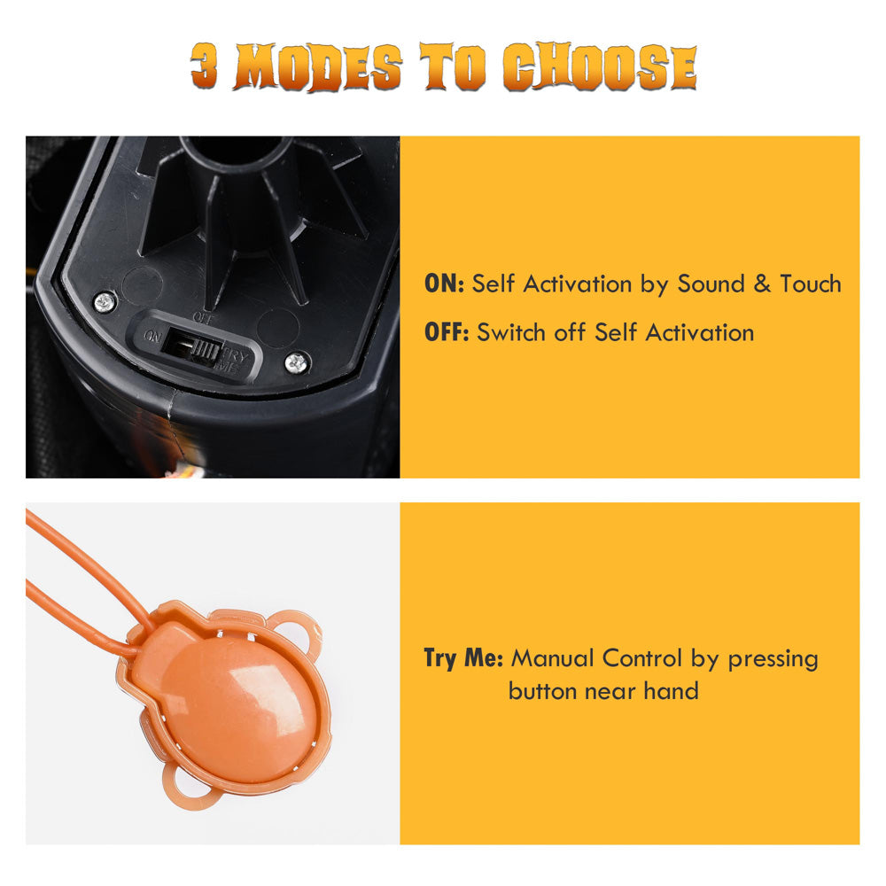- Sound & touch activated to move arms & light-up pumpkin head & give out bone-chilling moan to frighten trick-or-treaters