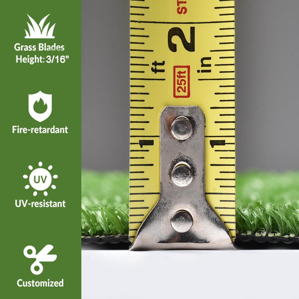 - With 3/8" grass blades height provides lush look & soft touch like natural grass, unaffected by weather