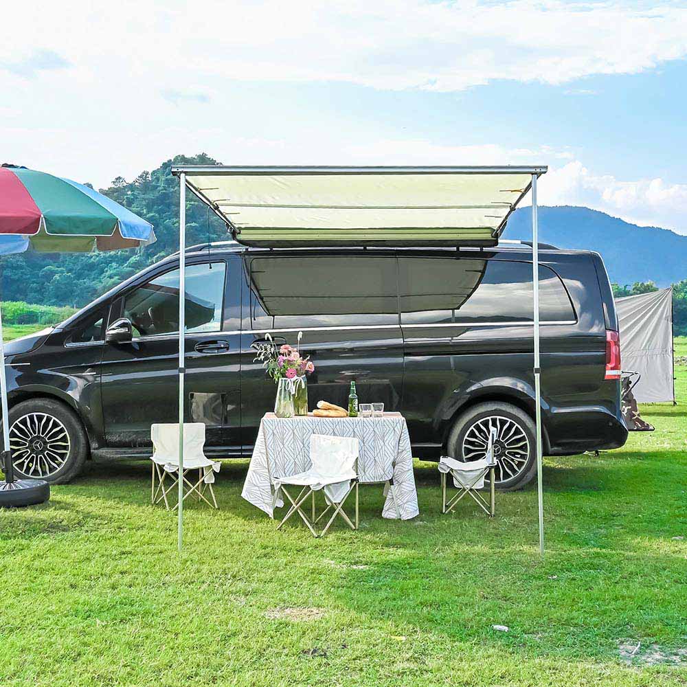 Our 6 7/12 x 4 7/12 ft car side awning with LED light bar fits for most automobile with roof rack. The awning made of 420D oxford fabric with 2000mm PU coating works as a shelter, providing 30 sq.ft cover to prevent sun and rain. 14w LED light bar with 1500 lumen provides bright illumination at night.