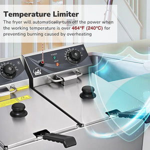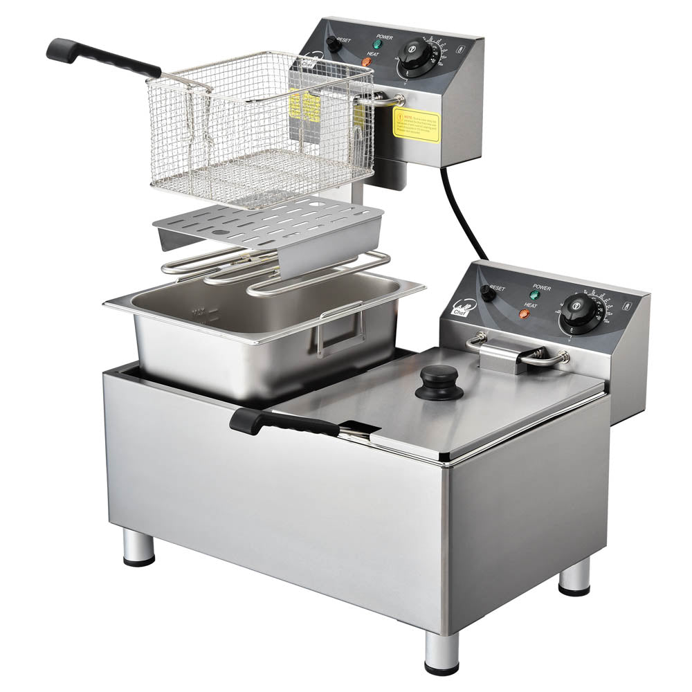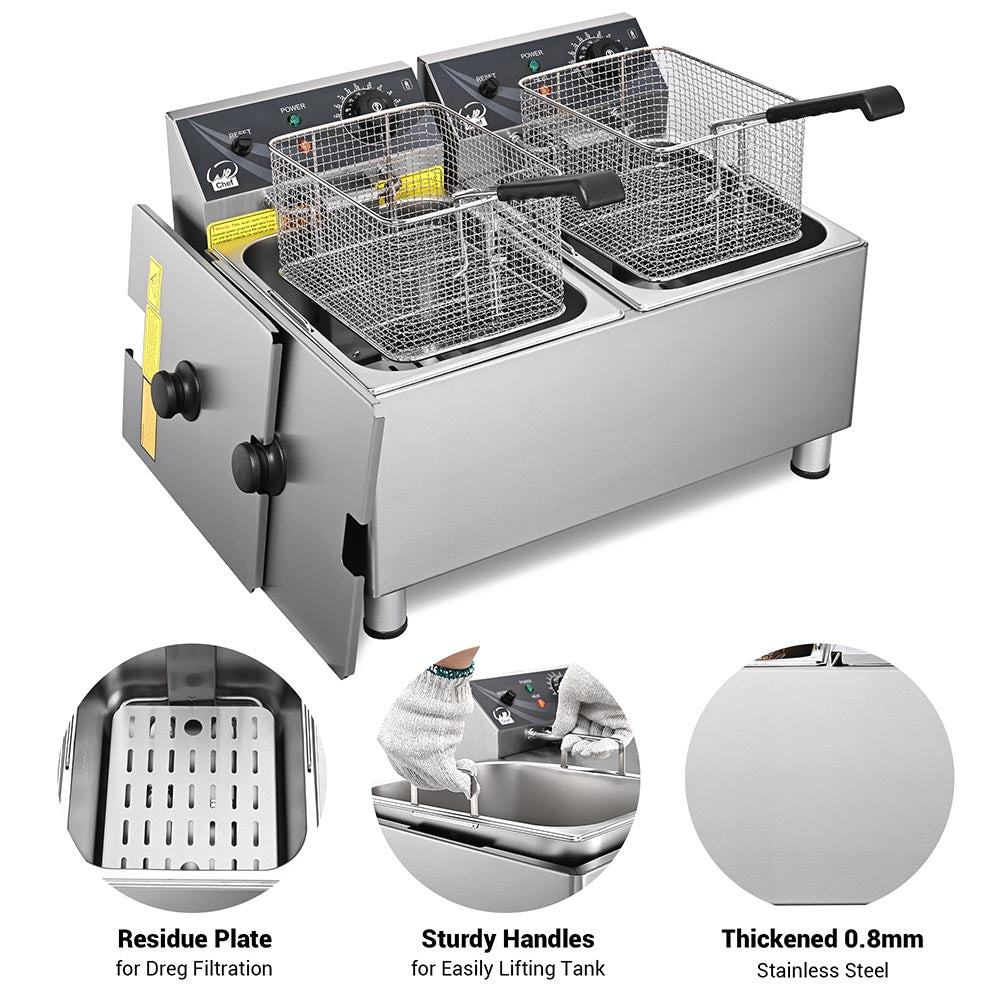 Get your fry on with Yescom Dual Tank Deep Fryer! With a large 24L capacity, you can fry more in less time. The fast heating feature ensures quick and efficient cooking, while the safe design and easy cleaning make this fryer a must-have for any kitchen.
