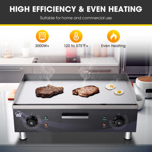 Yescom Electric Countertop Griddle Flat Grill 24in 3500W