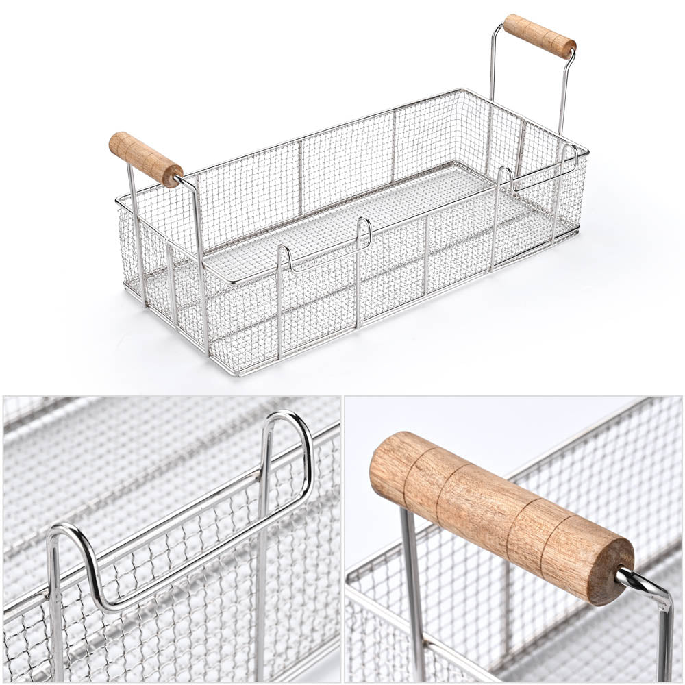 - Fryer basket with handle on each side prevents scalding of your hands and brings safe and easy operation