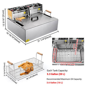 Yescom Electric Fat Deep Fryer Countertop 20L Large Tank