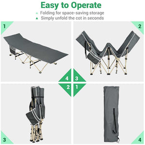 Foldable & Lightweight for Easily Taking Outside - 73"x26"x20" Folding Twin Camping Cot, features compact folding size( 7"x8"x41") and weighs only 13.5 Lbs for effortless transportation; With portable bag, convenient to carry, store in the car trunk or put it on a motorcycle for travel, camping, picnic, fishing and other outdoor activities.