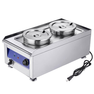 This Food Warmer Steam Table 2x 7.4 Qt. High Quality stainless steel construction, pots, timer controls and drainage faucets. It is designed for commercial uses, such as food trucks, restaurants, supermarkets, fast food shops, snack bars, trailer kitchens, etc.