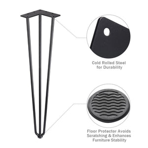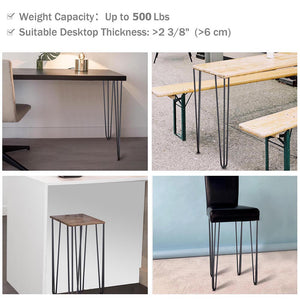 The 28" Black Heavy Duty Hairpin Legs set we offer you is made of cold rolled steel and can support up to 500lbs. and is equipped with rubber feet to protect the floor. Even better, it can be used in places such as coffee table, desk and bench through simple installation, which is very convenient.