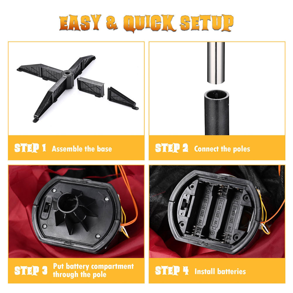 - No tool required for easy installation, assemble base & poles, put the battery box through pole, and extend the ghost