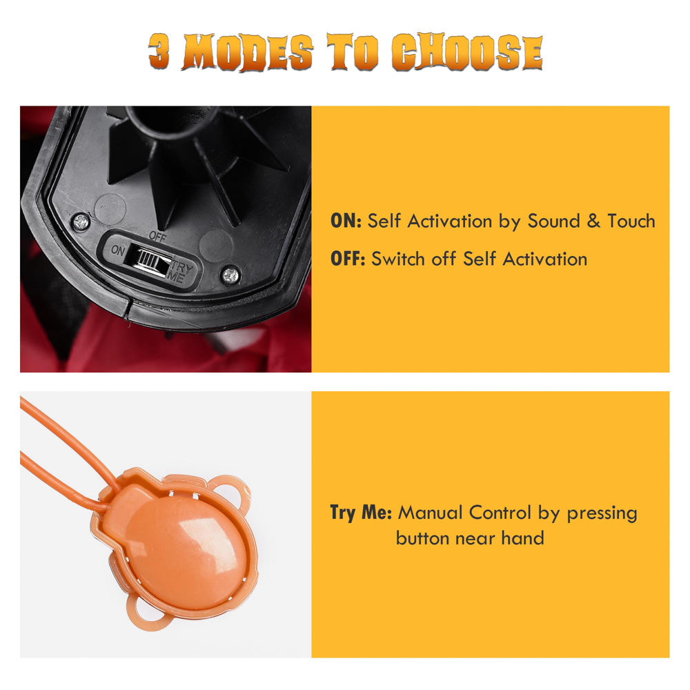 - Sound & touch activated to sway back & forward with eyes glowing with red light & give out bone-chilling demon scream
