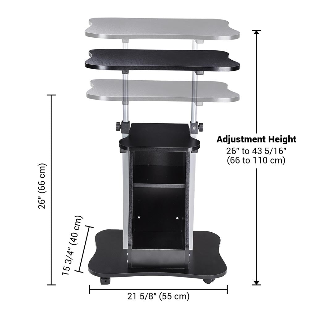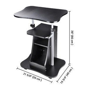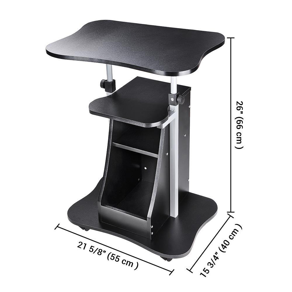 Yescom Black Rolling Laptop Cart 21-5/8"L x 15-3/4"W x 26"H High Quality Height-Adjustable allows you adjustable from 26" to 43-5/16" to fit your comfortable working posture, suitable for lecture, home, office, dorm room, workstation and so on.