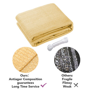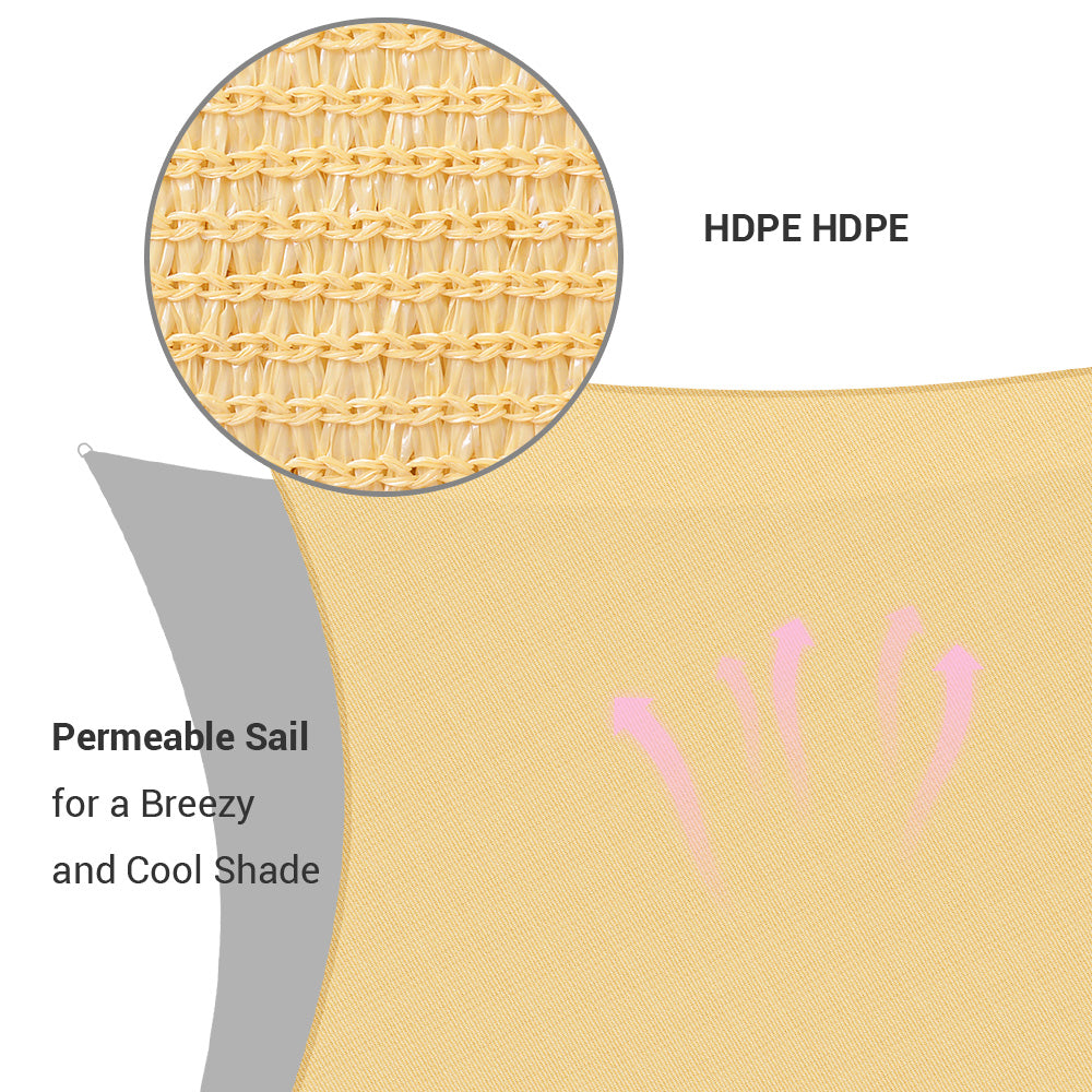 - HDPE Reduces Heat Transfer - Made by 100% brand new 185GSM HDPE material to efficiently reduce the temperature under sail about 50°F (10°C), excellent breathability to allow breeze to pass through, offers a cool and airy shelter on hot days