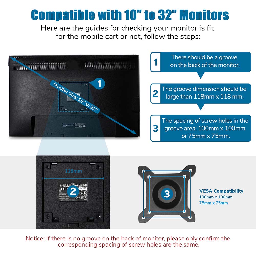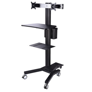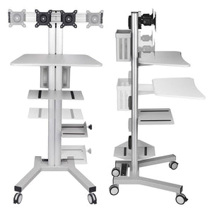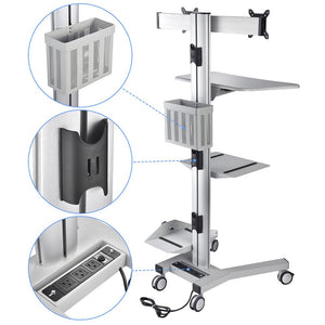 Optimize your workflow efficiency with PC Computer Workstation Mobile Cart which comes 2 mounts for 2 monitors up to 32 inch(VESA 75x75 & 100x100). With its all-in-one compact design, you can put whole set of desktop on it with printer. By use this cart, now you can slide your pc to anywhere you want inside the building and get your work done. It's great for your office, factories, warehouses, shopping mall etc.