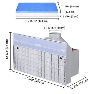 Yescom Airbrush Spray Booth Kit features High-efficient fan withdraws 4 cb meters of air per minute, reducing paint fumes efficiently. Vent hose to draw the harmful gas out of the door or window, making the air in your studio cleaner; Fiberglass filter sponges to remove larger particles and fog.