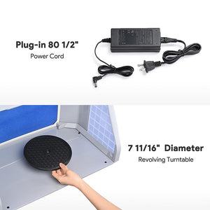 - 360-degree rotatable turntable for convenient spraying objects from different angles & complete spray coverage