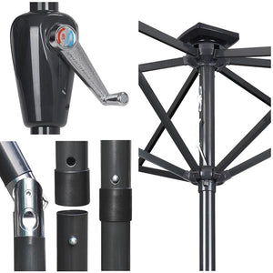 - Push to Tilt - Tilt system for flexibly adjusting the umbrella to block the sun light in different positions