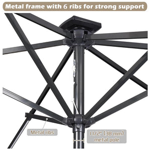 Yescom 10x6.5 ft. Rectangle Outdoor Patio Umbrella with 6-Rib lights is covered with polyester fabric, is more durable and has level 4 European to standard color fastness up. Compared with products without any anti-fading technology, its original color in the sun is longer.