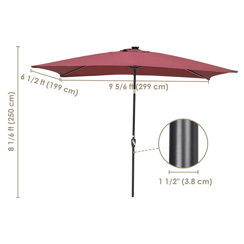 Yescom Rectangular Patio Umbrella with Solar Lights 10x6.5 ft 6-Rib