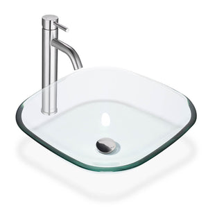 Transparent Tempered Glass Vessel Sink 17"x17"x6" High Quality a simple style in true minimalist fashion, sleek and contemporary. For its natural clear and countertop installation, this basin will be a striking focal point to refresh your bathroom. It is great for home, spa, villa, hotel, restaurant or other commercial use and home use!