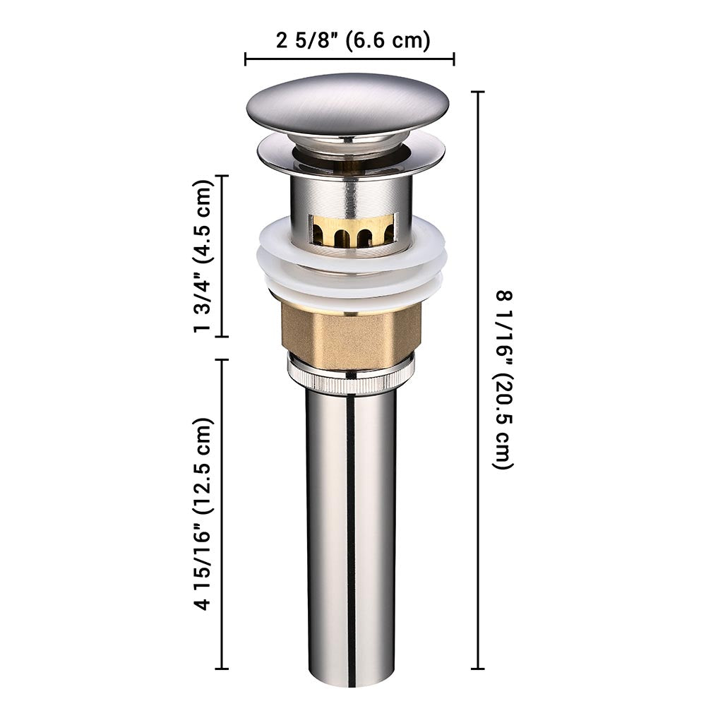 - Drain Dimension(Dia.xH): 2 5/8" x 8 11/16"