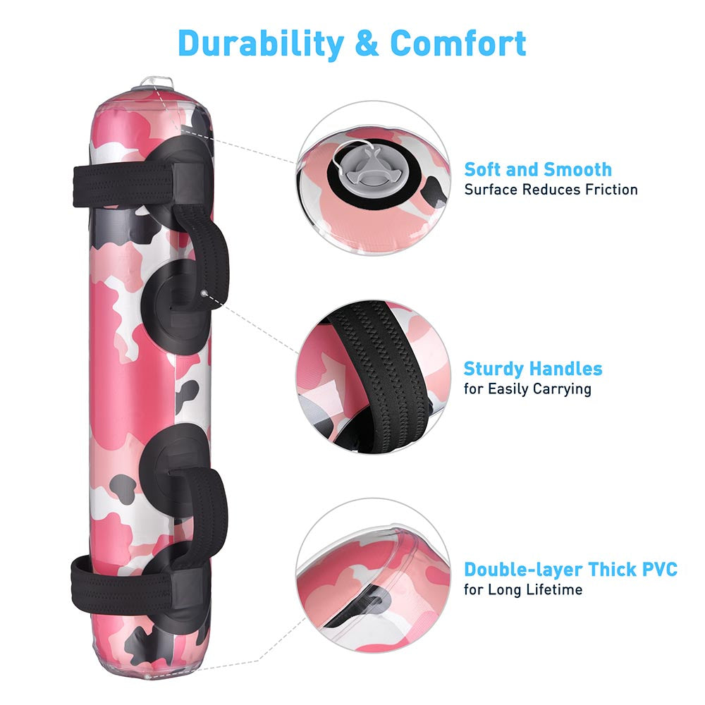 Yescom Pink Camo Core Bag with water & air filling design offers convenience to store in bag & case, to carry and to do any exercises anytime & anywhere just through several simple steps, more flexible and less limitation than traditional sand bag; Perfect for sport lovers to train as they need at home, in office and during business trip or travel