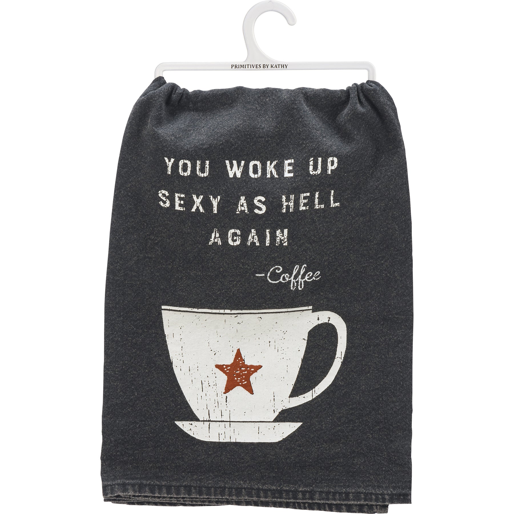 You Woke Up Sexy As Hell Again Coffee Dish Cloth Towel | Novelty Hilarious Tea Towel | Cute Kitchen Hand Towel | 28" Square